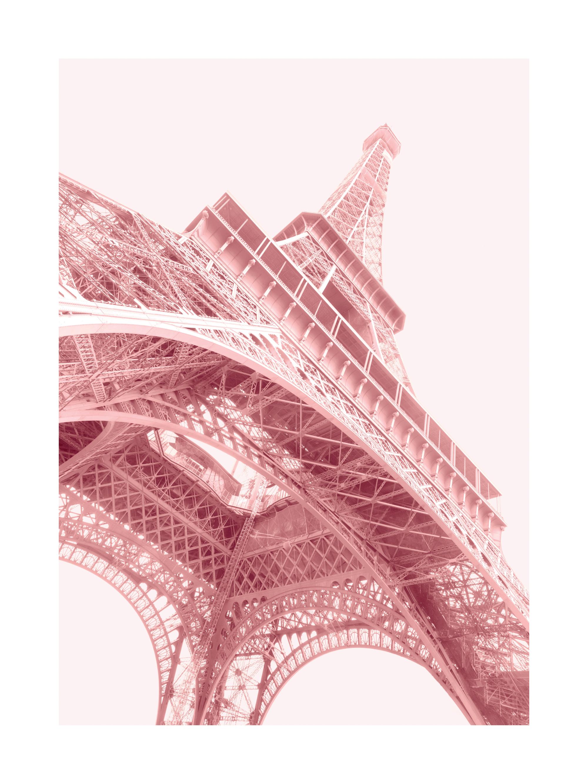 Różowa fotografia wieży Eiffla w Paryżu w stylu retro. Wprowadź Paryż do wystroju swojego domu dzięki temu niesamowitemu plakatowi.